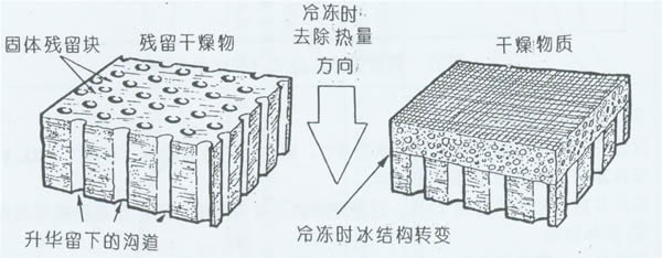 預(yù)凍就是將溶液中的自由水固化,賦予干后產(chǎn)品與干燥前相同的形態(tài),防止抽空干燥時起泡、濃縮和溶質(zhì)移動等不可逆變化發(fā)生,盡量減少由溫度引起的物質(zhì)可溶性減少和生命特性的變化。